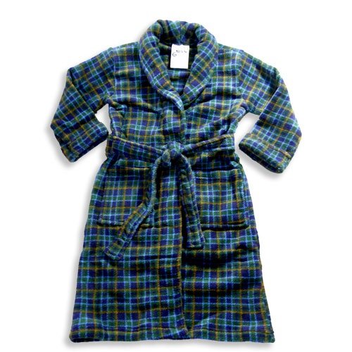Carters Watch Your Wear - Toddler Boys Robe, Navy, Green, Gold, Soft Plush Cozy, Shawl Collar, Cuffed Wrists, Inside Tie, Attached Tie Belt, Patch Pockets, Plaid Design, Flame Resistant, 100% Polyester, #19426